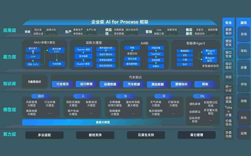 KY开元问学智车解决方案是一套基于AI技术的汽车行业智能化系统,覆盖从底层算力到顶层AI应用的全栈方案。方案由算力层、模型层和应用层组成:算力层,方案支持多种一体机配置,具备云端灵活部署、多云适配以及动态优化计算资源的能力;模型层,KY开元问学平台版提供了企业级AI应用一站式构建与管理平台,支持基于后训练强化技术的汽车企业专属模型的训练、评测和运营;应用层,KY开元问学DeepSeek版提供包括超级员工、智能招采、智能营销、智能客服、AI for BI等一系列解决方案,可助力汽车行业实现数字化转型,让管理更智能、响应更敏捷。